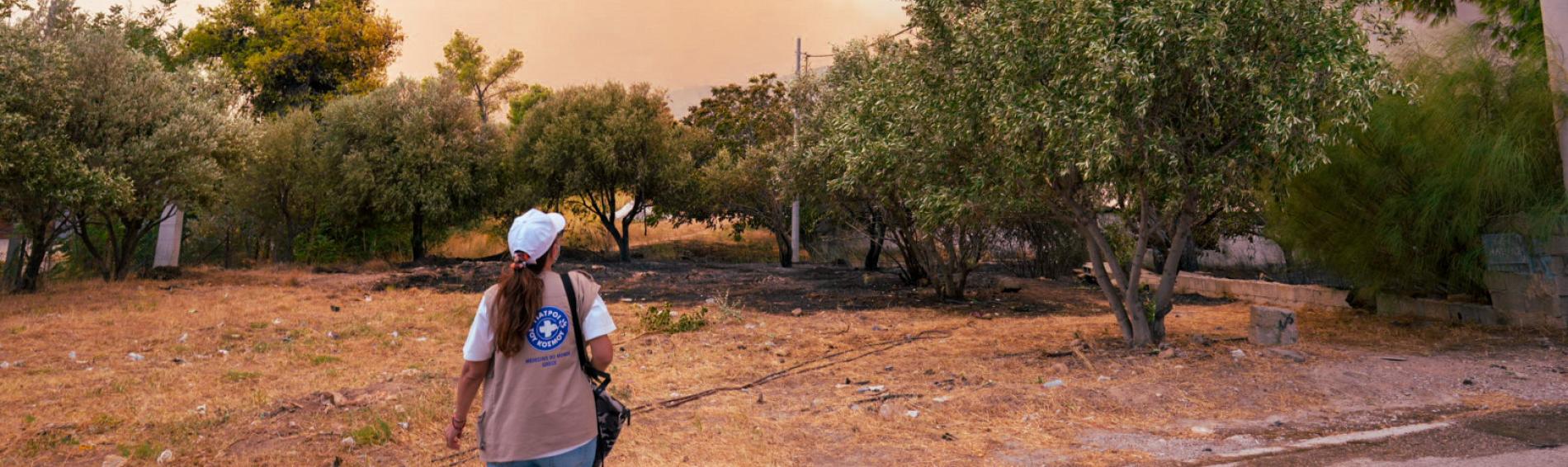 „Zuerst habe ich nicht richtig verstanden, was passiert, nur Feuer gerochen… Ich konnte noch nicht einmal die Tür aufmachen und hinaus gehen. Der ganze Garten stand in Flammen und dann fing die Markise Feuer.“ Das berichtete eine 85-jährige Bewohnerin des Dorfs Loutses auf der Insel Korfu als die Mitarbeitenden von Ärzte der Welt sie einige Tage nach dem Feuer besuchten. Zwei Tage musste die alte Dame ohne Essen und Trinken ausharren bis die Feuerwehr den Brand endlich löschen konnte.