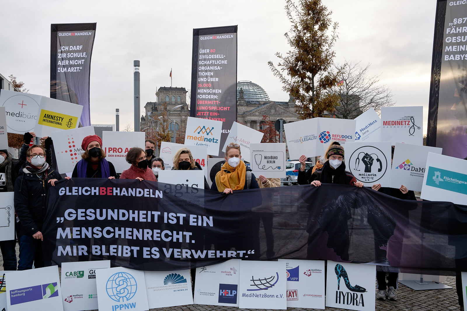 im Namen von über 80 zivilgesellschaftlichen Organisationen und Wohlfahrtsverbänden der Kampagne #GleichBeHandeln sowie von 26.000 Bürger*innen, die unsere Petition unterzeichnet haben, appellieren wir an Sie, den Gesundheitsbereich von der Übermittlungspflicht in § 87 Aufenthaltsgesetz auszunehmen. Konkret lautet unser Formulierungsvorschlag für den Koalitionsvertrag: „Wir werden § 87 des Aufenthaltsgesetzes so einschränken, dass das Gesundheitswesen von der Pflicht ausgenommen wird, Daten über Menschen ohne geregelten Aufenthaltsstatus an die Ausländerbehörde weiterzugeben.“